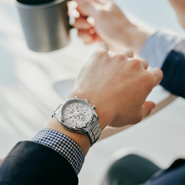就職活動や新生活での使いやすさにこだわって、シルバーのケースと白いダイヤルを採用。安心感のある無彩色のカラーリングの中に、身に着けて気分が上がる華やかで若々しいポイントを盛り込みました。
