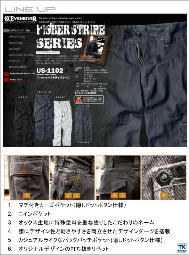 イーブンリバー カーゴパンツ 春夏 秋冬 パンツ メンズ レディース 綿100% スリム 仕事服 おしゃれ ズボン EVENRIVER er-us1102