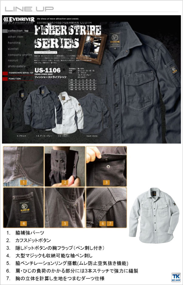 イーブンリバー 長袖シャツ 春夏 秋冬 上着 メンズ 綿100% スリム 仕事服 おしゃれ トップス EVENRIVER er-us1106