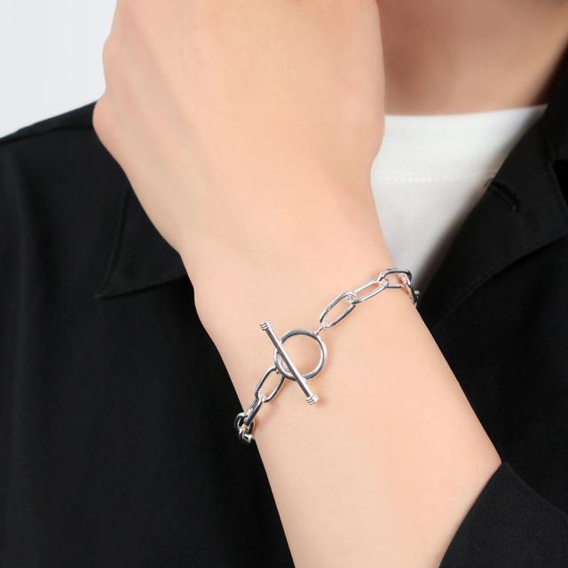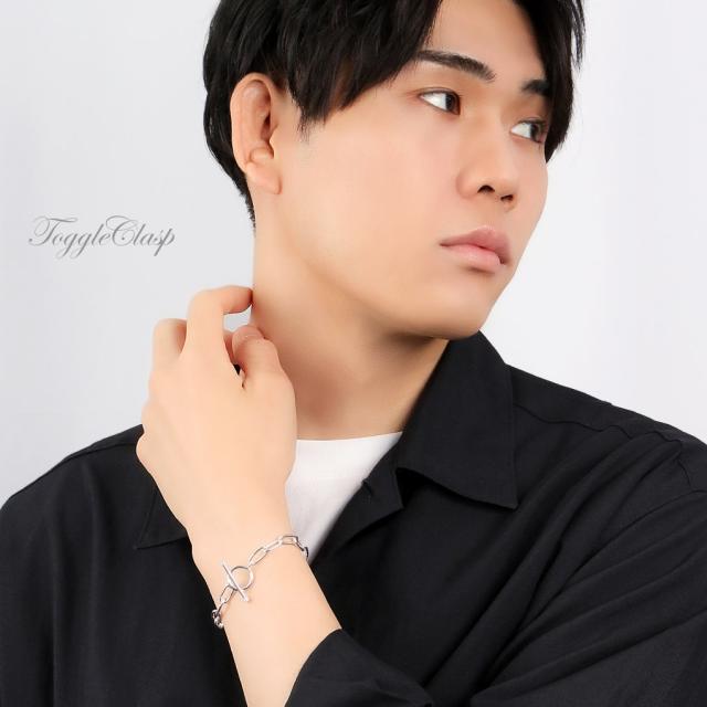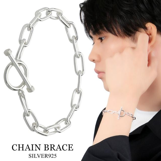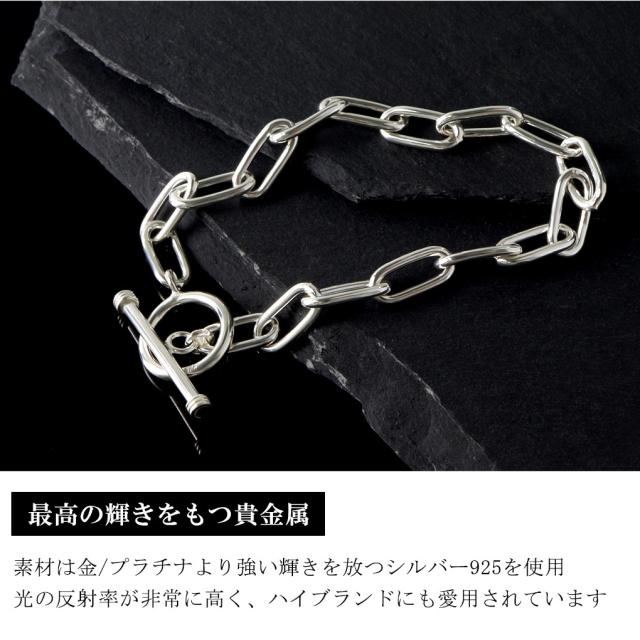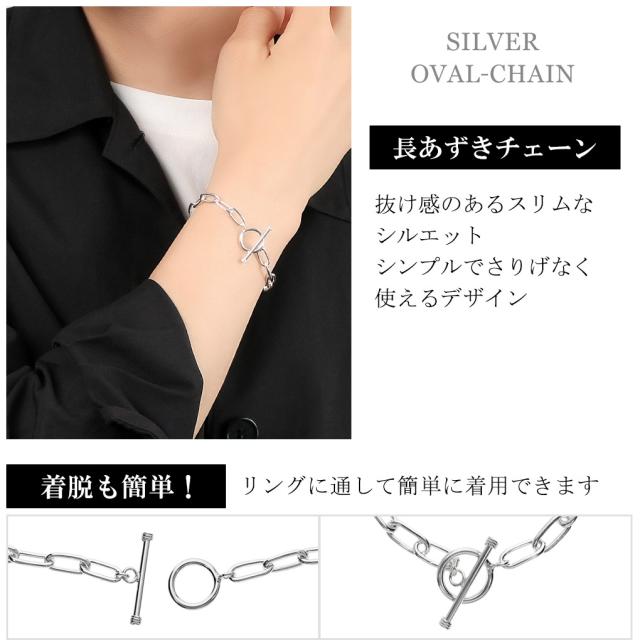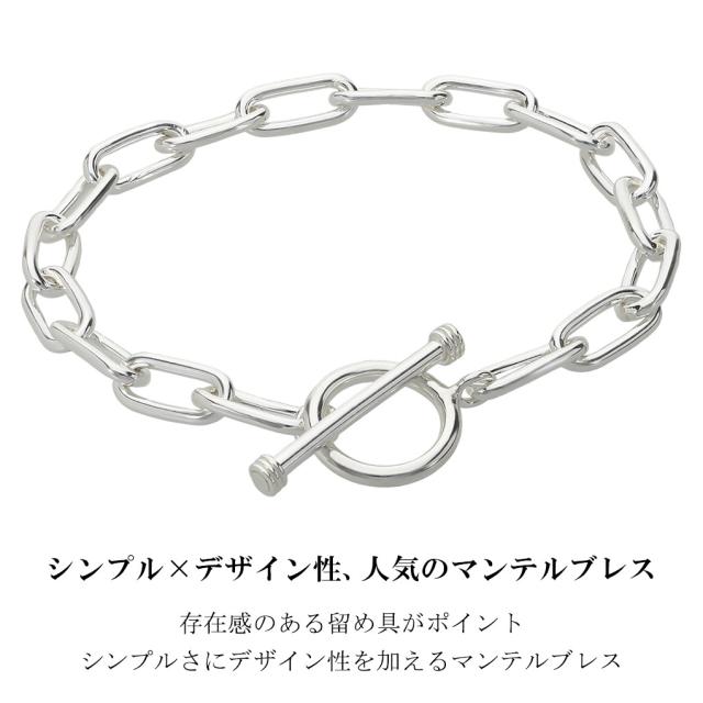 シルバー925 長あずきチェーン ブレスレット シルバー マンテル Tバー 19cm シンプル マンテルチェーン デザインチェーン 輪っか トグル