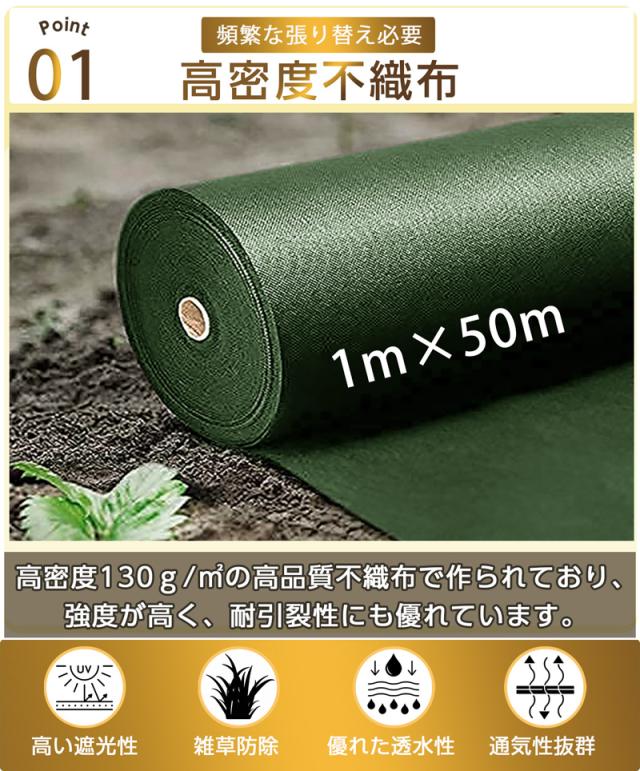 超高耐久 防草シート 1mx50m 高密度130g 固定ピン付き 長期間敷き直し不要 不織布 除草シート 雑草シート 草刈り不要 砂利下 雑草防止 雑草対策 農業除草剤不要 雑草防止シート 除草 草取り 雑草