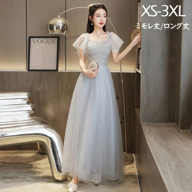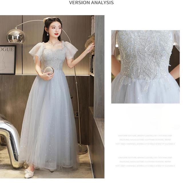 ドレス レディース ロング丈 ミモレ丈 ピアノ 発表会 パーティードレス 結婚式 イブニングドレス フォーマル 大人 ドレス エレガント 編み上げ お呼ばれ 袖あり 二次会 披露宴 演奏会 忘年会 司会ドレス グレー da001m6m6m6