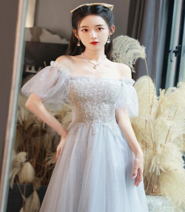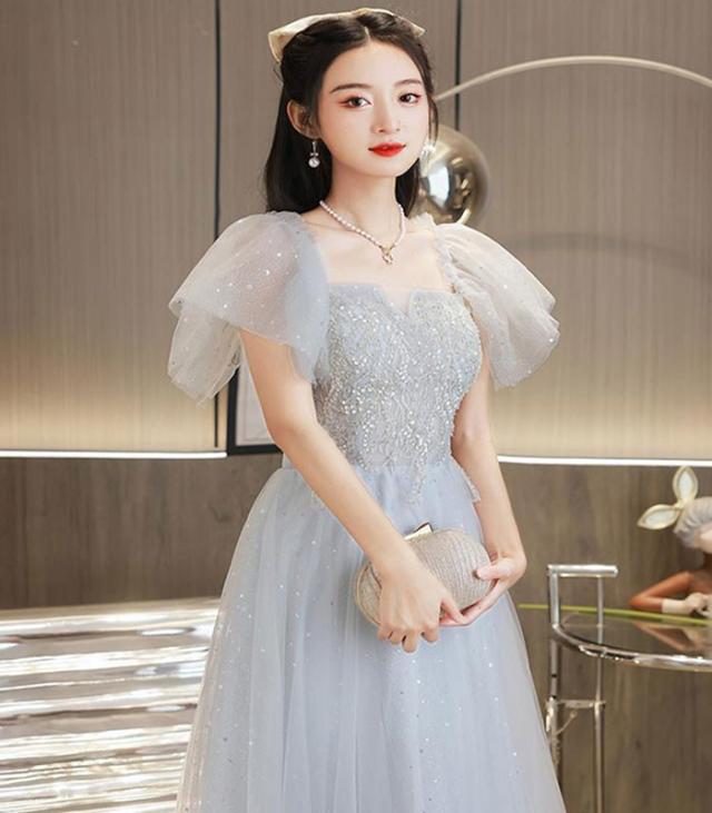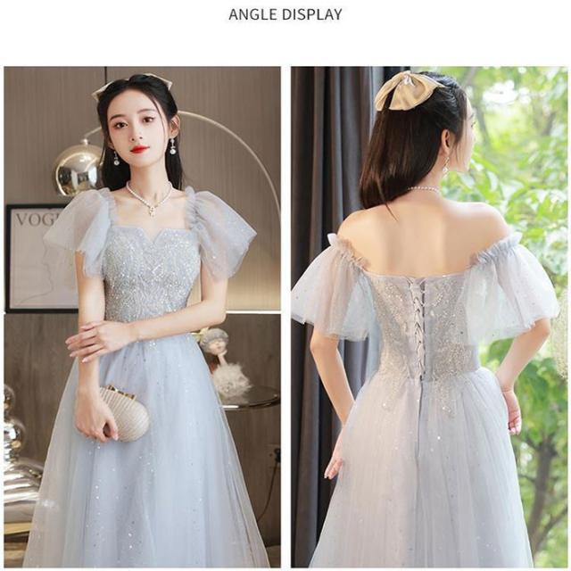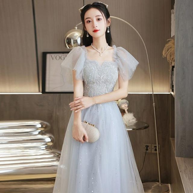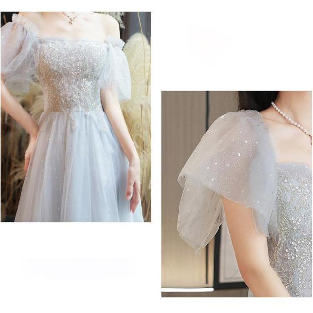 ドレス レディース ロング丈 ミモレ丈 ピアノ 発表会 パーティードレス 結婚式 イブニングドレス フォーマル 大人 ドレス エレガント 編み上げ お呼ばれ 袖あり 二次会 披露宴 演奏会 忘年会 司会ドレス グレー da001m6
