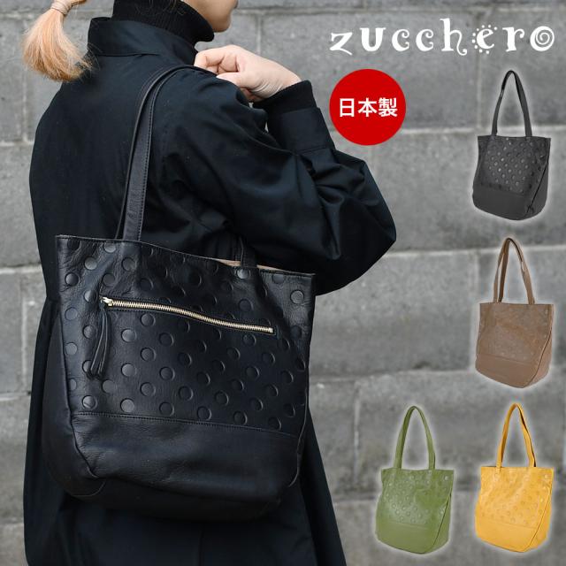 水玉 ドット トートバッグ B5サイズ対応 日本製 レディース 姫路レザー ズッケロ 牛革 本革 レザー 柔らか ソフト 素押し 型押しレザー 大人可愛い キュート ガーリー シンプル 軽量 軽い 女性用 婦人用 角底 シンプル 国産 zuccherofilato ズッケロフィラート 送料無料