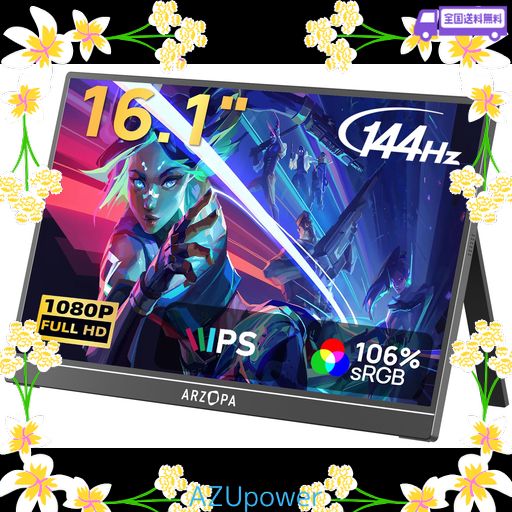 ARZOPA 16.1インチ ゲーミングモニター 144HZ モバイルモニター フルHD IPS非光沢パネル 自立スタンド付 HDR対応 ブルーライト軽減 SWITCH/PS5/PC対応 USB TYPE-C/MINI HDMI Z1FC
