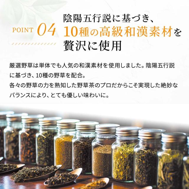 陰陽五行説に基づき10種の野草をバランスよく配合。