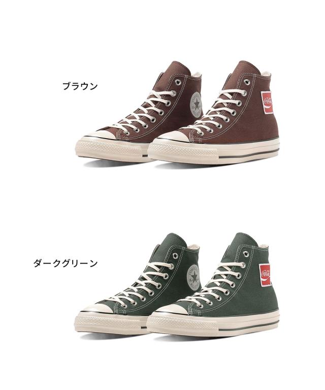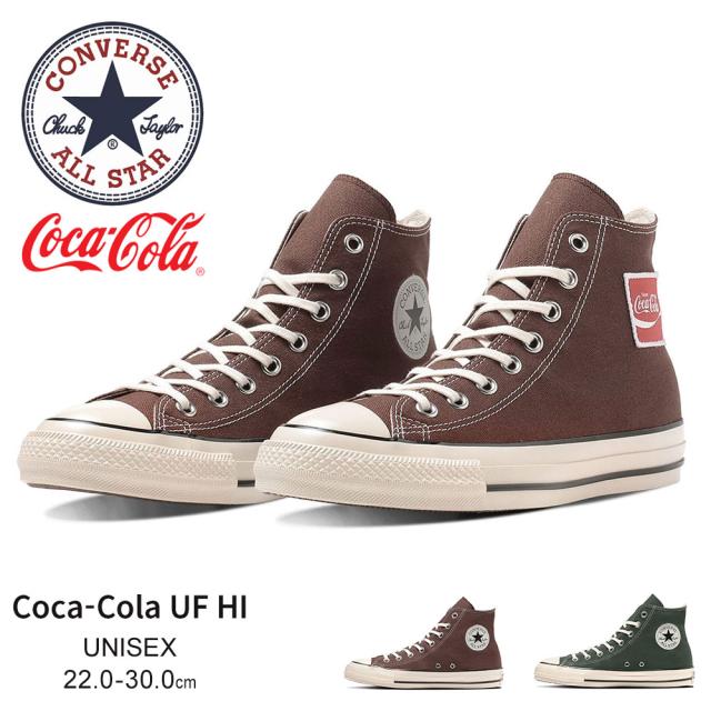 コンバース オールスター ハイカット スニーカー コカ・コーラ コラボモデル ロゴワッペン カジュアルシューズ 定番 王道 軽量 紐 メンズ レディース ユニセックス 男女兼用 ジュニア ダークグリーン ブラウン CONVERSE ALL STAR US Coca-Cola UF HI