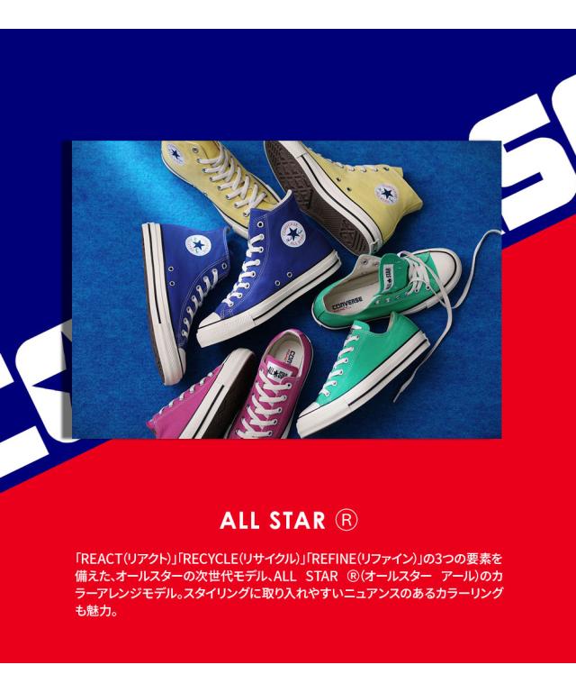 コンバース オールスター R ハイカット スニーカー カジュアル キャンバスシューズ リサイクル 定番 王道 紐 メンズ レディース ユニセックス 男女兼用 ジュニア フラミンゴピンク グリーン ライトブルー マリーゴールド ゴールド ネイビー converse ALL STAR R HI