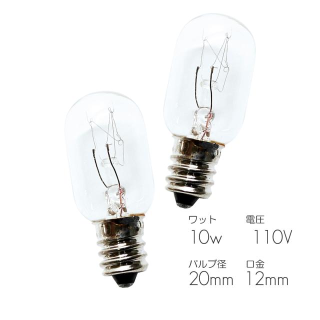 10wナツメ球2個入り 口金12mm 全長48mm バルブ径20mm お仏壇吊灯篭用 シャンデリア用 透明球 電圧 110V