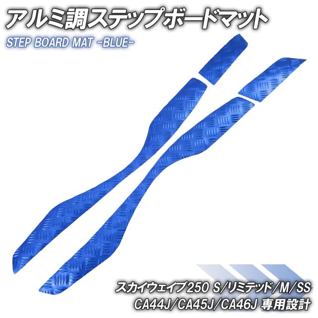 アルミ調 ステップマット スズキ スカイウェイブ250 S/リミテッド/M/SS CJ44A CJ45A CJ46A ブルー メッキ バイク ゴムマット カスタム パーツ