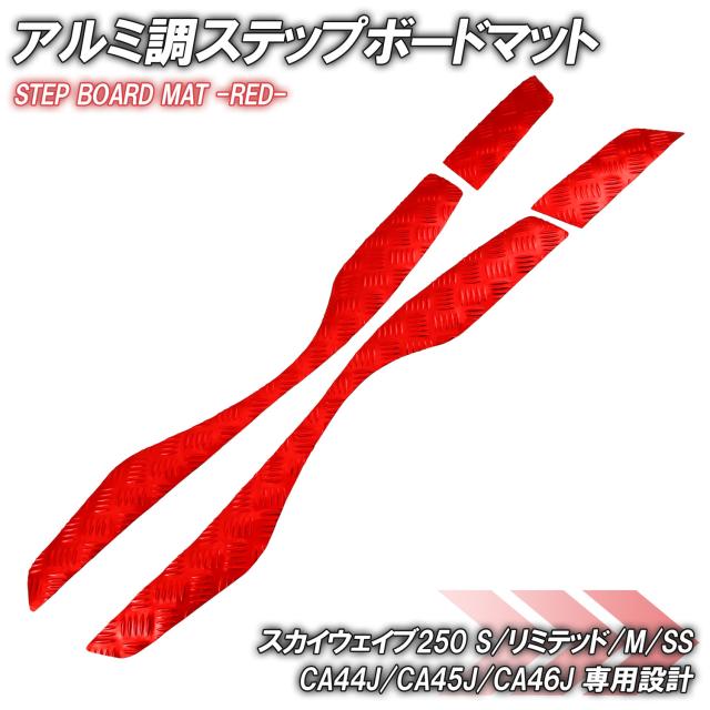 アルミ調 ステップマット スズキ スカイウェイブ250 S/リミテッド/M/SS CJ44A CJ45A CJ46A レッド メッキ バイク ゴムマット カスタム パーツ