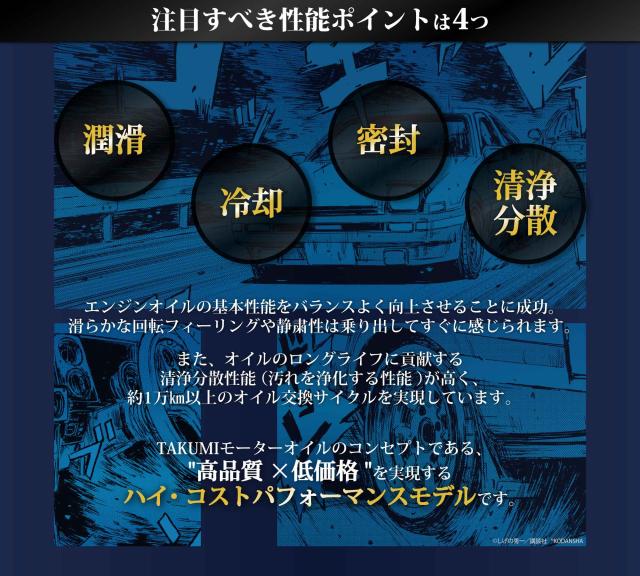 高品質 日本製エンジンオイル リーズナブル コスパ エンジンオイルメーカー 信頼感 配送が早い リピート多 真剣に開発 安定した性能品質 頭文字D 低燃費 店舗販売 梱包丁寧 良心的 かっこいい エンジンオイル多い