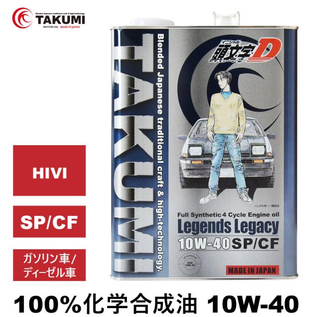頭文字D エンジンオイル 10W-40 4L SP/CF ガソリン車 ディーゼル車 化学合成油 合成油 API取得 TAKUMIモーターオイル 自動車用エンジンオイル 送料無料 LL 10W-40