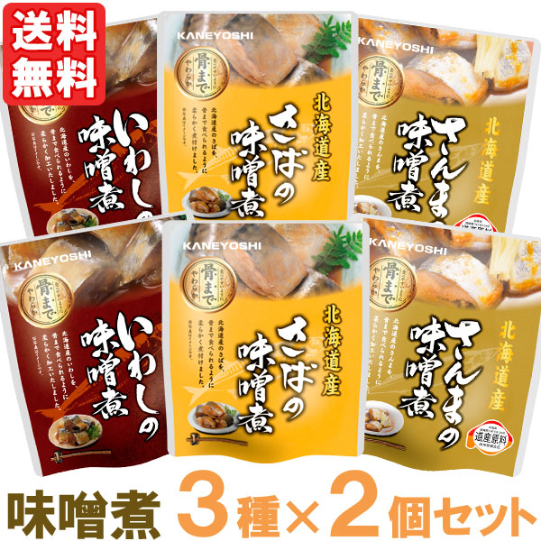 いわし・さば・さんまの味噌煮(3種×2個セット)【兼由】【メール便送料無料の場合代引・同梱不可】