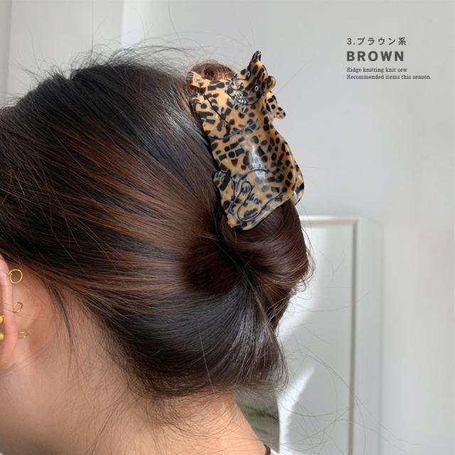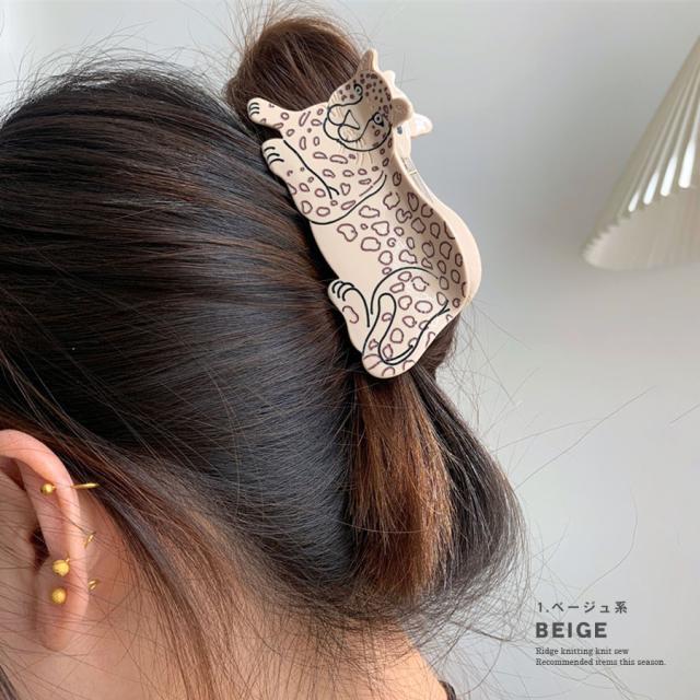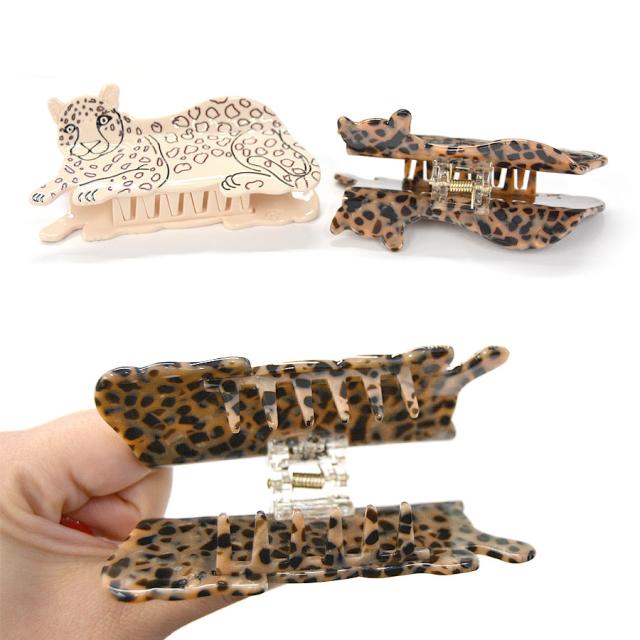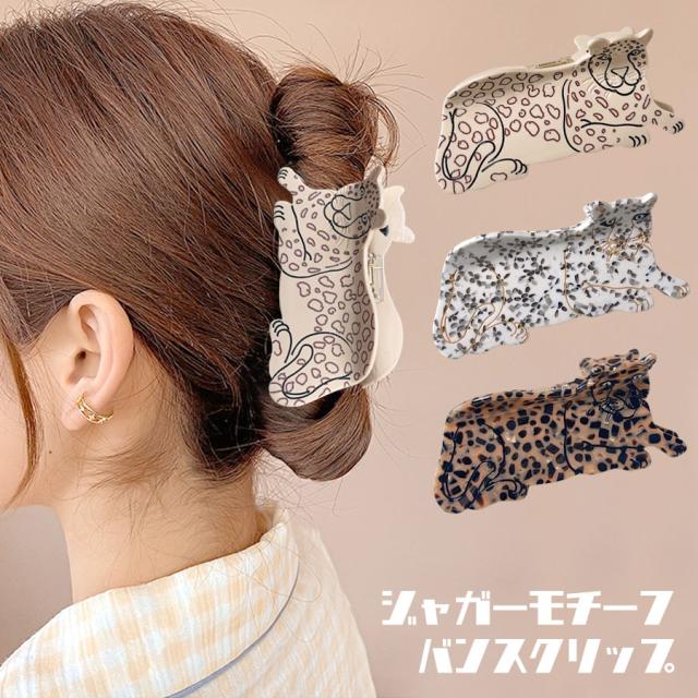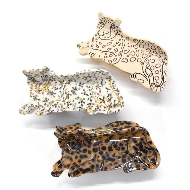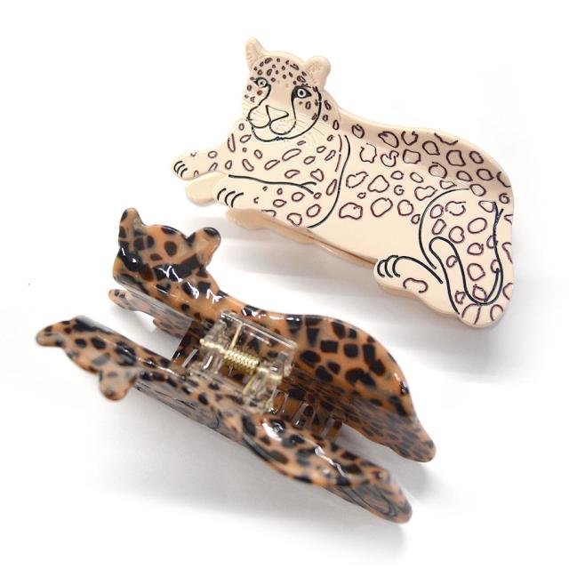 【アニマル バンスクリップ ヘアクリップ ジャガー チーター ヒョウ レオパード アセテート アセチ レディース ヘアアクセサリー ハーフアップ お洒落 ユニーク 大人 ぶち柄 ネコ 動物 派手 豹柄 大きめ 立体的 可愛い】