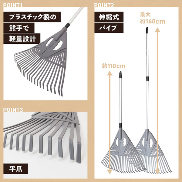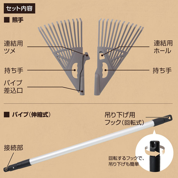軽量/伸縮式 2way組み立て式熊手 | |