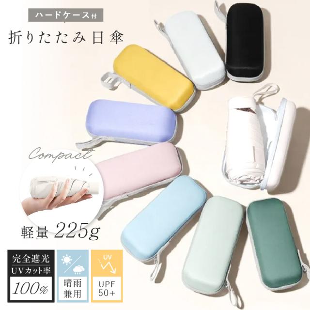 おしゃれ日傘 ジッパー ハードケース 付き 折りたたみ傘 折り畳み傘 日傘 uvカット 100% 紫外線 対策 日焼け対策 ケース付き かわいい 無地 小さい 晴雨兼用 軽い 軽量 コンパクト ポータブル 薄い 傘 メンズ レディース UPF50+ 完全遮光 遮熱 涼しい