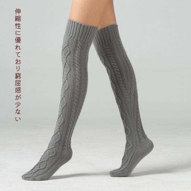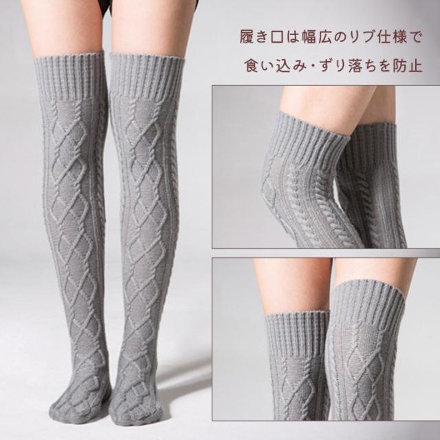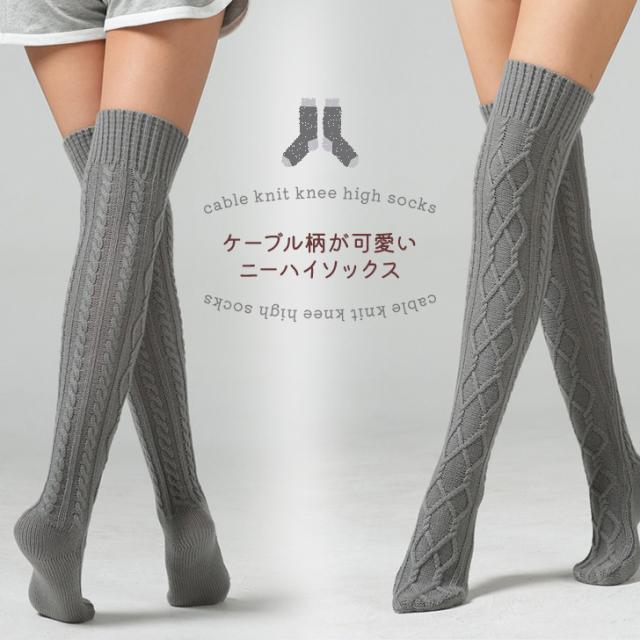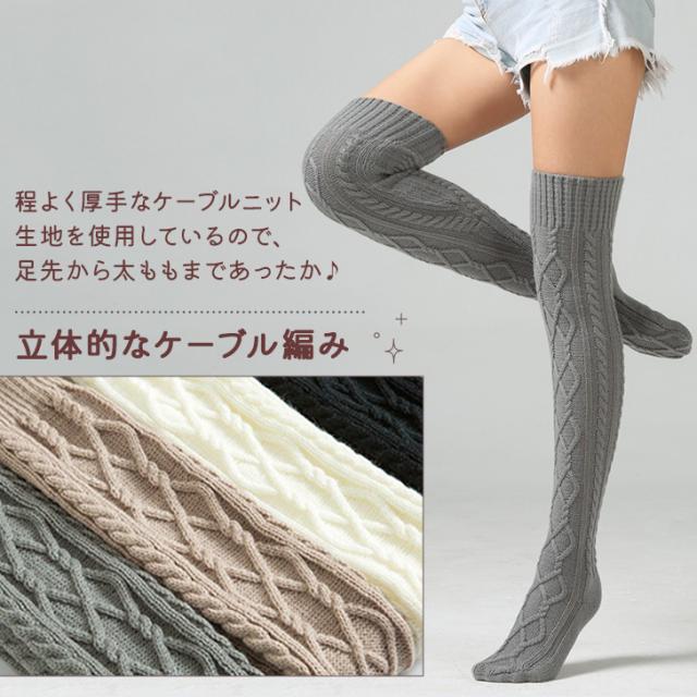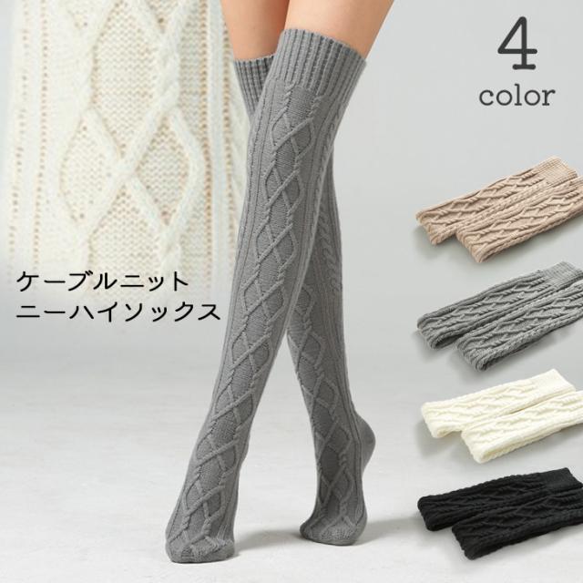 新作 シンプル ケーブルニット ニーハイソックス レディース 靴下 ソックス ニーハイ オーバーニー サイハイソックス レッグウェア レッグウォーマー ニット 白 黒 大きめ 厚手 肉厚 冬 冬用 あったか 暖かい