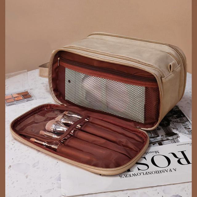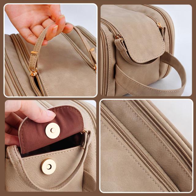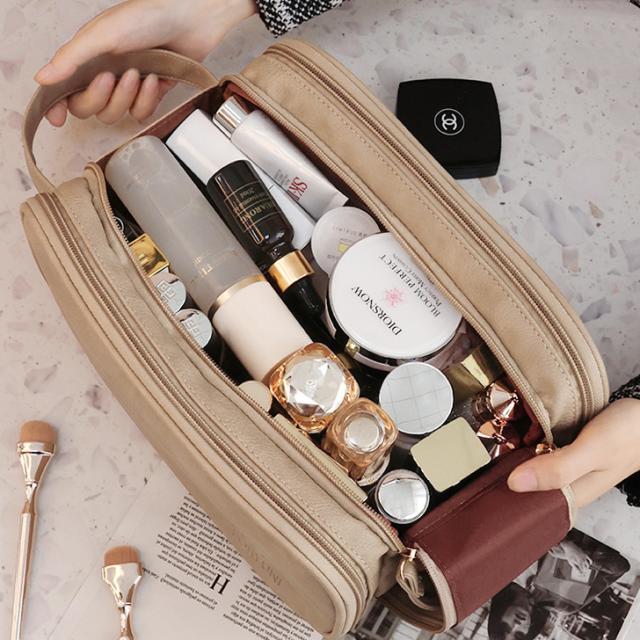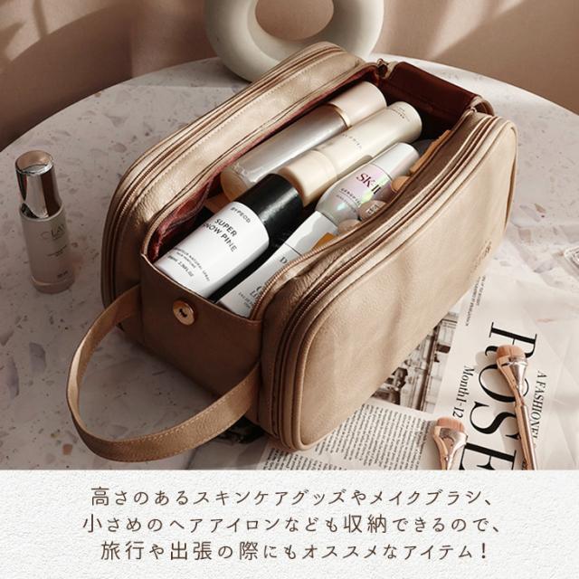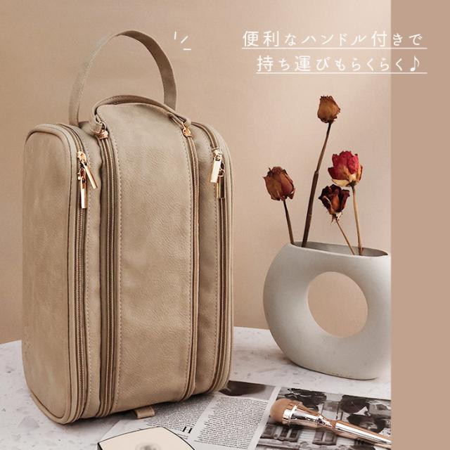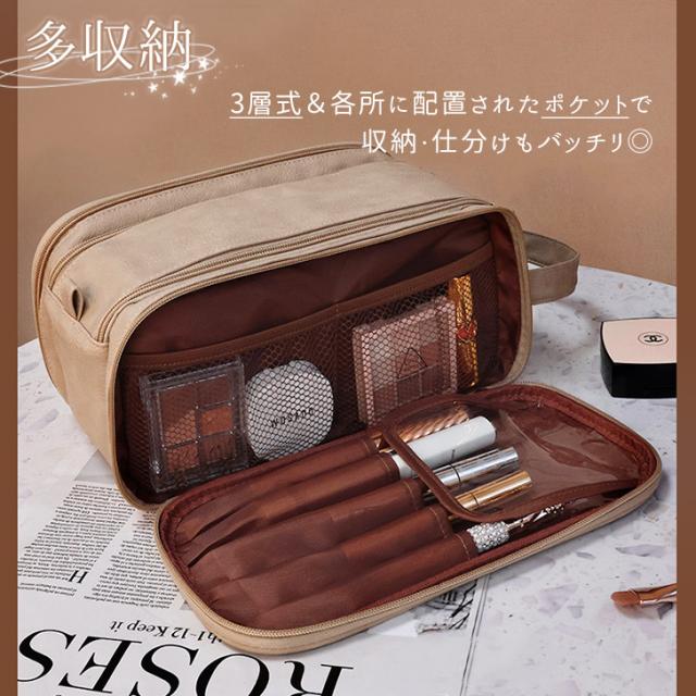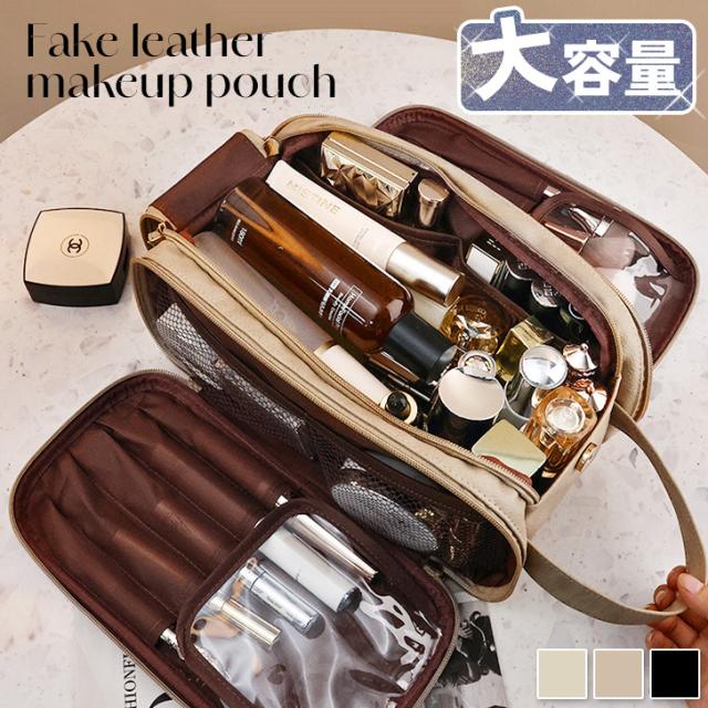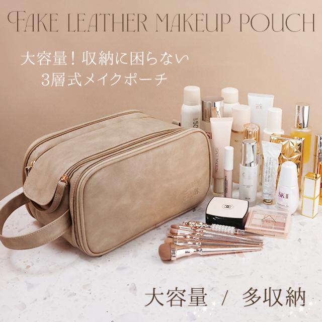 新作 3層式 大容量 撥水 フェイクレザー メイクポーチ レディース 化粧ポーチ コスメポーチ バニティ ポーチ 小物入れ 旅行 トラベル 大きめ 軽量 仕切り 自立 持ち運び 機能的 かわいい おしゃれ 韓国 大人