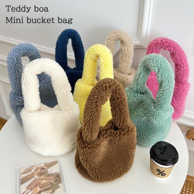 新作 選べる8カラー テディボア バケツ型 ミニ ワンハンドルバッグ レディース バッグ ハンドバッグ ミニバッグ ミニトート ボア ファー もこもこ 軽量 小さめ マチ広 起毛 秋冬 おしゃれ かわいい 大人 韓国