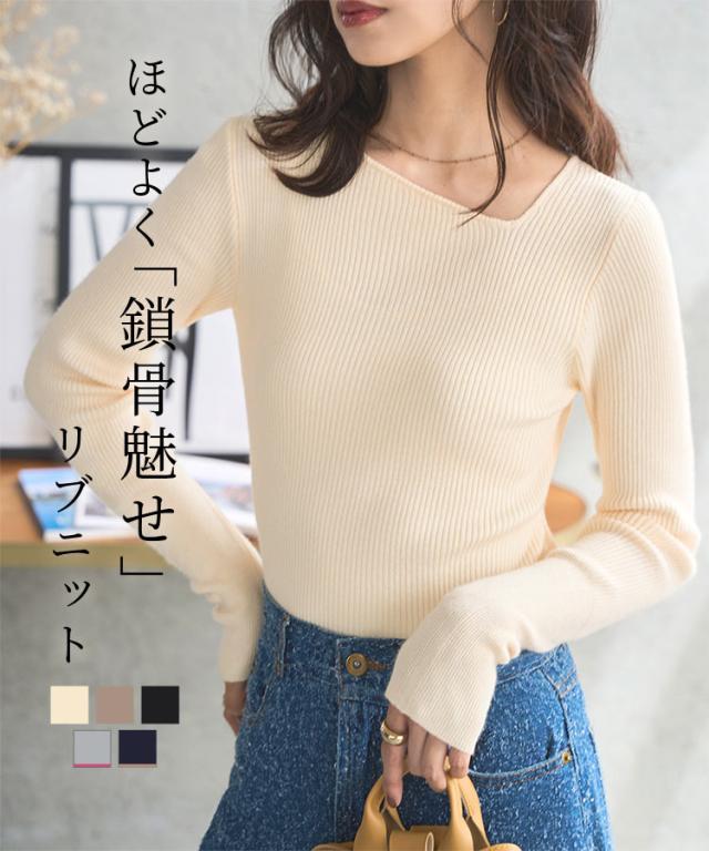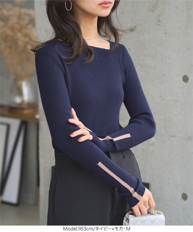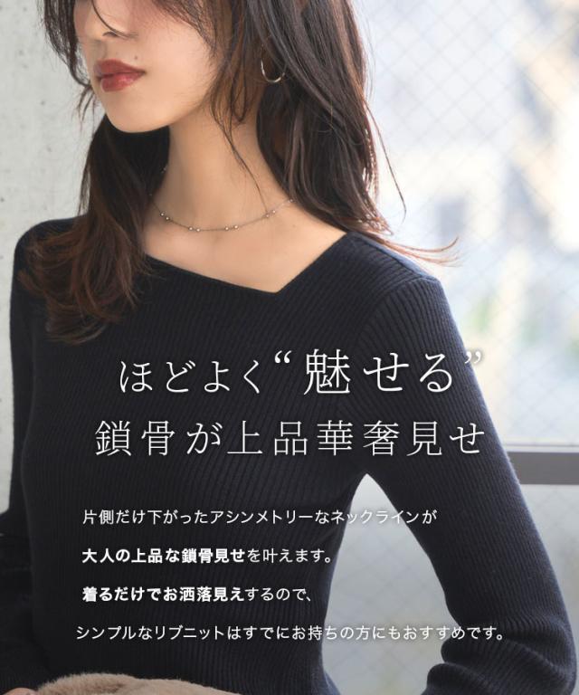 アシンメトリーネックリブニット C7371 入荷済 リブニット ニット アシメネックリブニット アシメネック アシンメトリー ネック デザイン デコルテ 大人 おとな リブ編み ラウンド くびれ きれいめ 上品 フェミニン ガーリー カジュアル コンサ