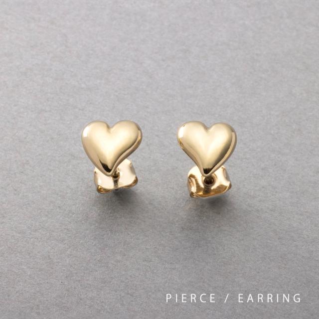 ぷっくりシルエットが可愛い、変形ハートモチーフのピアス/イヤリング。控えめなサイズ感が甘すぎない大人の可愛さを演出◎シンプルなデザインなので、幅広いシーンで活躍してくれます。低アレルギーのチタンポスト、その他メタル部分にはニッケルフリー素材を使用しているので、長時間の着用も安心です。