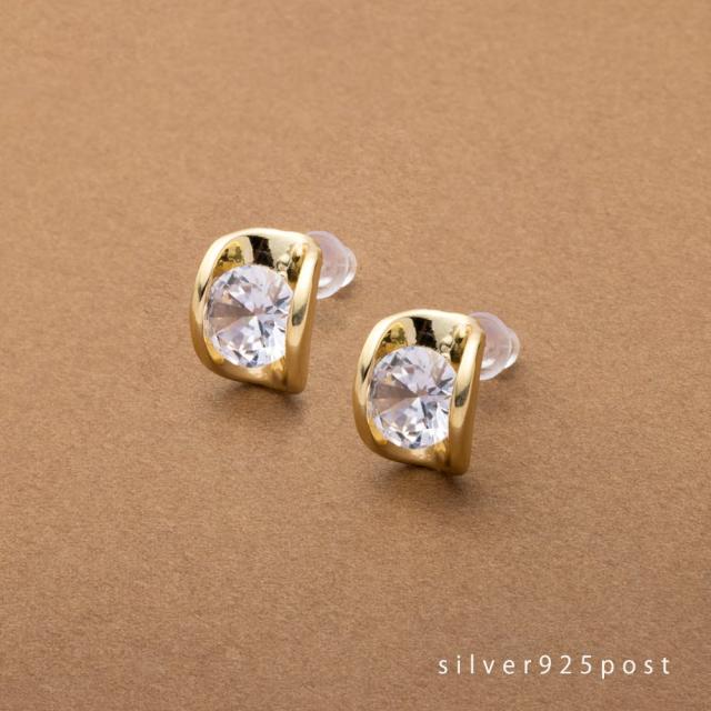 【ゆうパケットOK】 ピアス シルバーポスト SV925ポスト 低アレルギー レディース ビジュー メタル カーブ 立体 存在感 スタッドピアス シリコンキャッチ 大人 ゴールド シルバー outlet