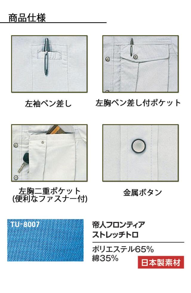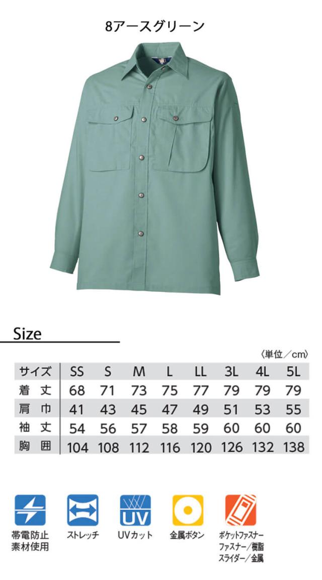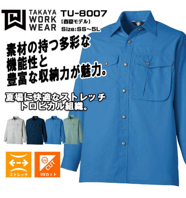 タカヤ商事 タカヤワークウェア 長袖シャツ TU-8007 春夏 サイズSS〜LL ストレッチ 帯電防止 UVカット 作業服