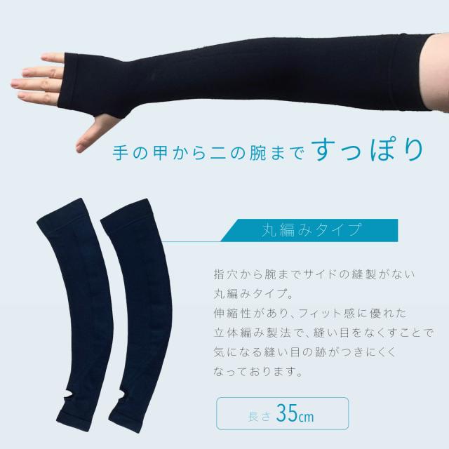 指穴から腕までサイドの縫製がない【丸編み】タイプ。