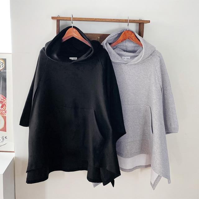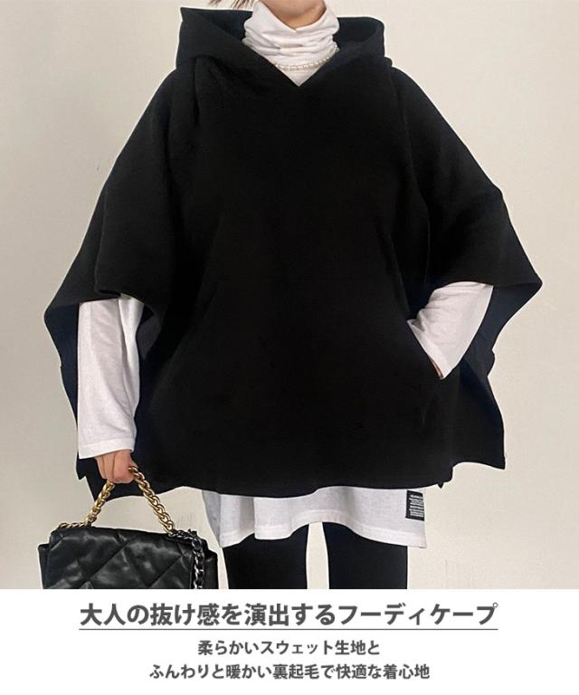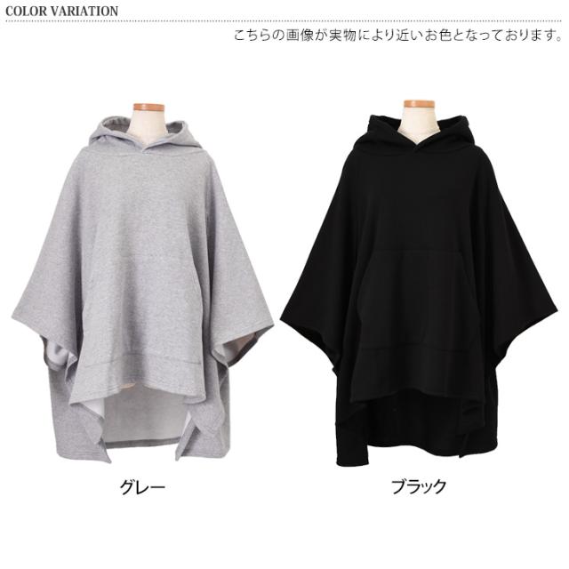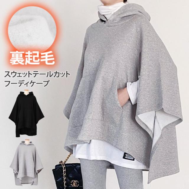 新作 裏起毛スウェットテールカットフーディケープ レディース ポンチョ マント トップス アウター 大きいサイズ 暖かい 防寒 おしゃれ レイヤード 重ね着 あったか スエット 上着 羽織り ロング丈 体型カバー