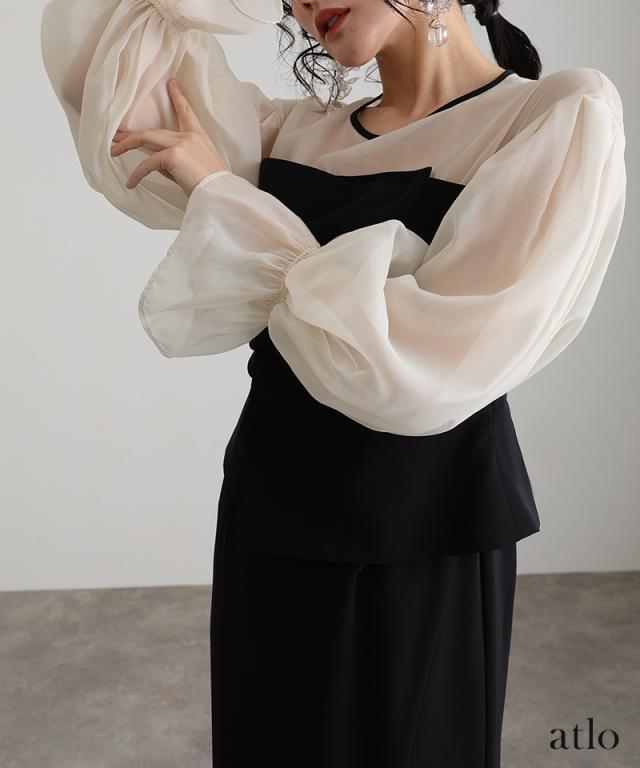 オーガンジーのディテールが華やかさを添え、軽やかな印象をプラス。