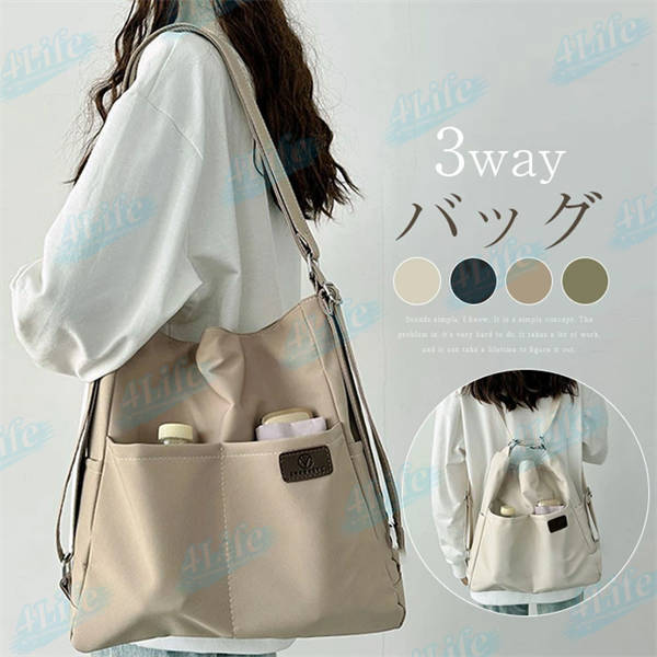 ショルダーバッグ レディース 3wayバッグ 斜めがけ 肩掛け リュック 3way バッグ 軽量 斜めがけ 大人 ナイロン 大容量 A4 大きめ 2way ショルダー リュックサック トートバッグ ポケットたくさん カバン 縦長 大人 女子 通勤 通学