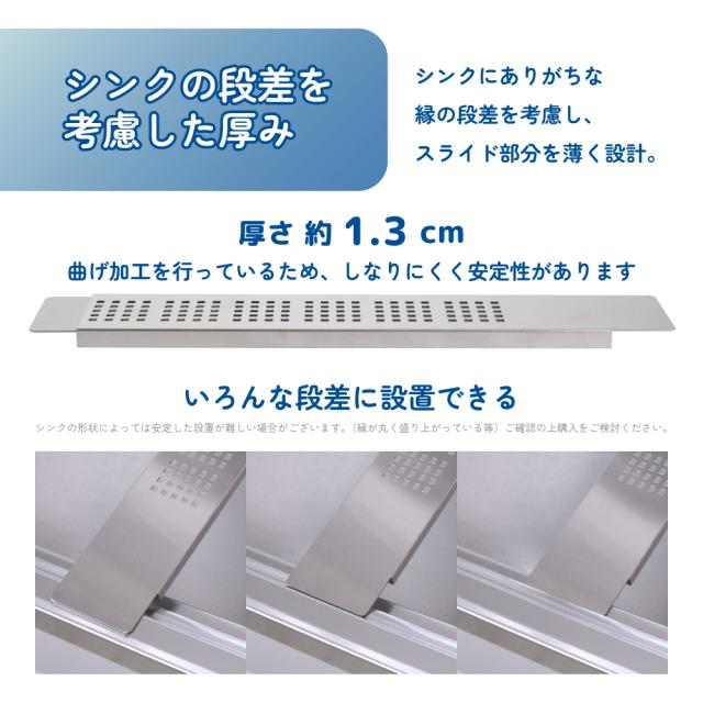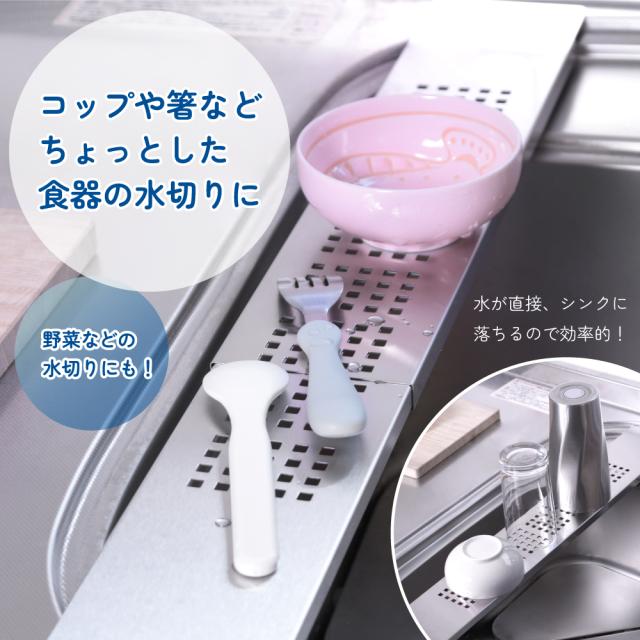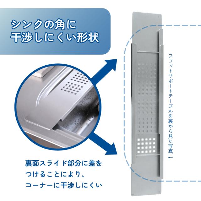 新発売 フラットサポートテーブル スリム ステンレス 幅8cm 長さ伸縮40cm ~ 58cm シンクに渡せる 水切りラック 水切りトレー 調理台 一人暮らし
