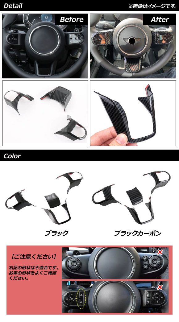 ステアリングスイッチカバー MINI(BMW) F54/F55/F56/F57/F60 2015年09月〜 ブラックカーボン ABS製 入数:1セット(4個) AP-IT2135-BKC