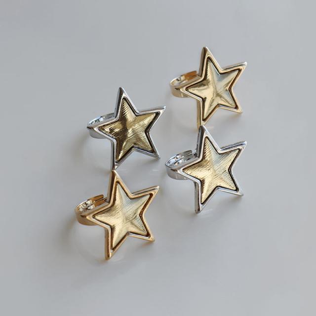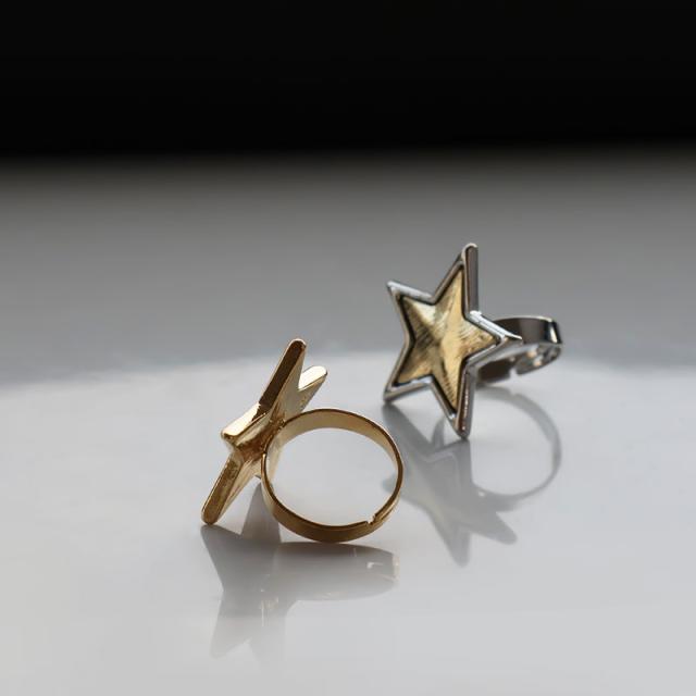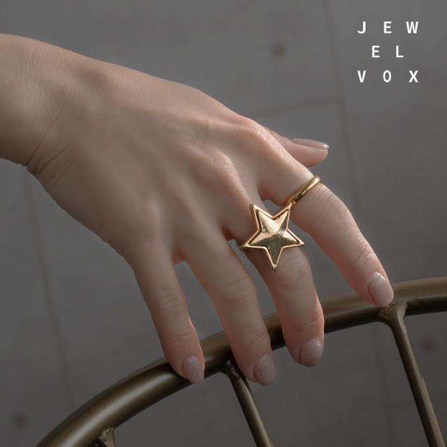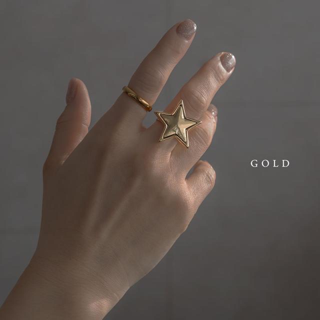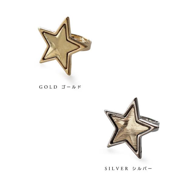 指輪 リング レディース ニッケルフリー 金属アレルギー 星 スター 大ぶり ワンポイント フリーサイズ バイカラー 11号 ゴールド シルバー 重ね付け シンプル おしゃれ 大人 かわいい デイリー カジュアル 普段使い オケージョン ギフト プレゼント