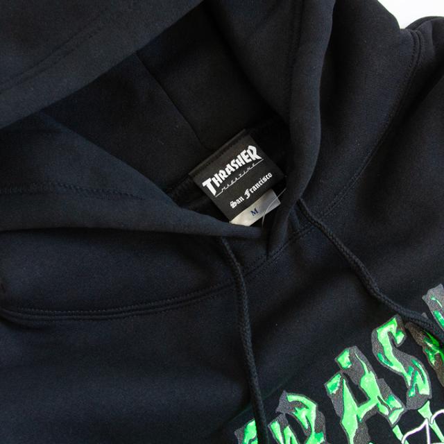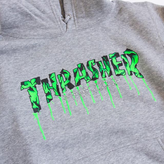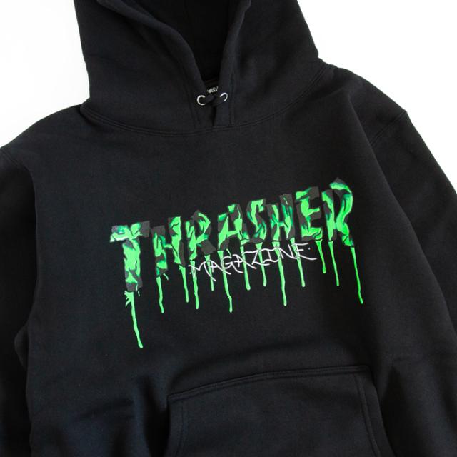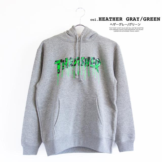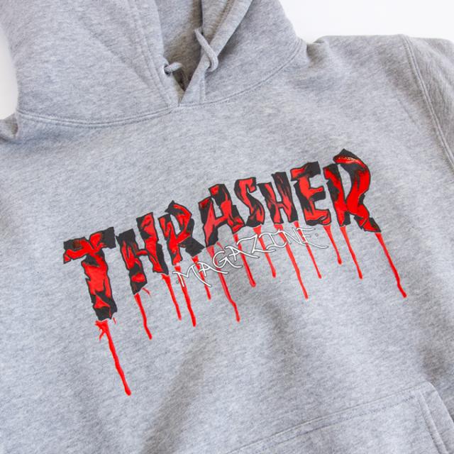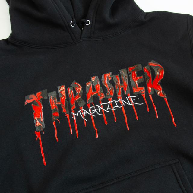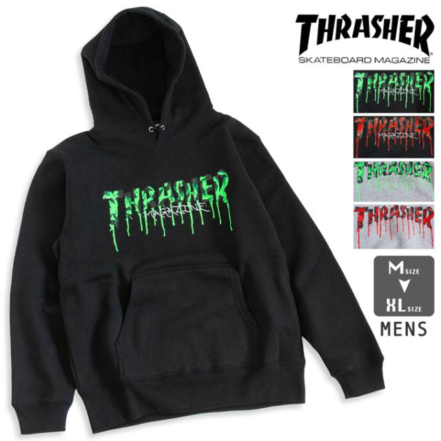 THRASHER スラッシャー BLOOD DRIP HOODIE SWEAT PARKA ブラッド ドリップ スウェット パーカ TH95370 スラッシャー パーカー メンズ トップス スケーター ロゴ プリント リラックスサイズ プルオーバー フーディ