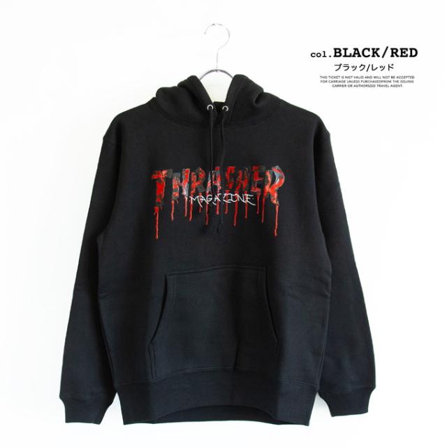 【SALE!!】 THRASHER スラッシャー BLOOD DRIP HOODIE SWEAT PARKA ブラッド ドリップ スウェット パーカ TH95370 / パーカー メンズ トップス スケーター ロゴ プリント リラックスサイズ プルオーバー フーディ