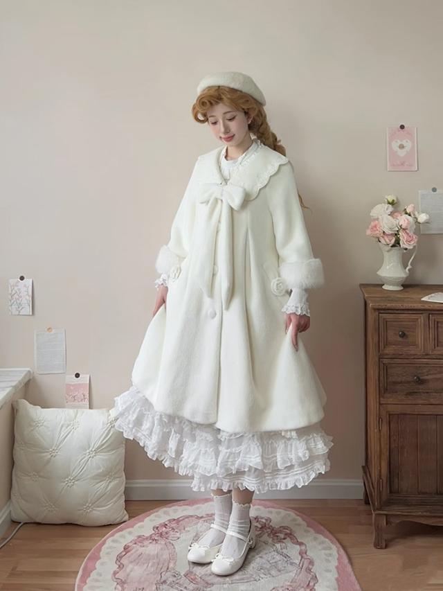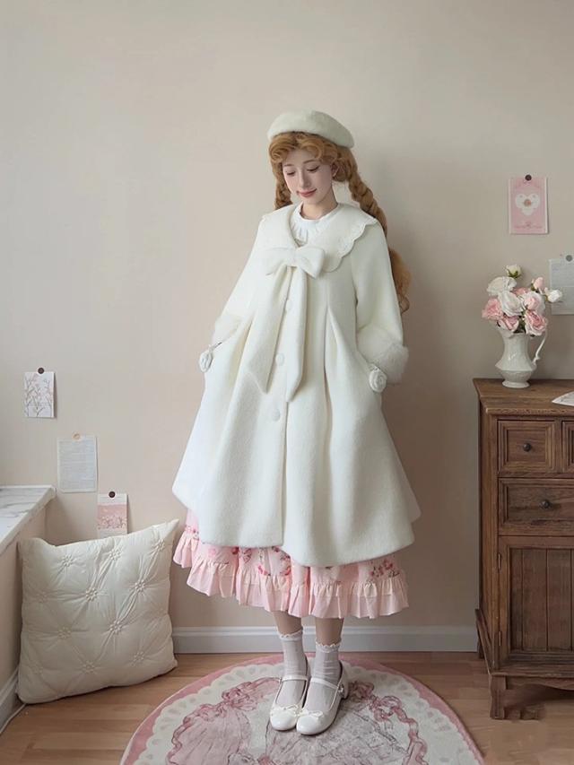 ステンカラーコート 冬服 レディース ジャケット 膝丈 もこもこ フリル コート ロリータ ロリータコート ロリータアウター トップス アウター 小柄 可愛い 学生 通学 通勤 日常着 着痩せ 女の子 長袖 袖あり 秋 冬 衣装 ゴスロリ 厚手 防寒 寒さ対策 秋冬 オシャレ