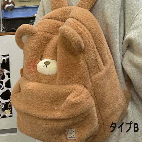 バッグ レディースリュック 可愛い 鞄 学生用リュック クマ耳付きファスナー付き ふわふわ もこもこ プレゼント