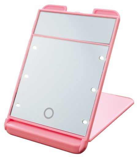 3倍拡大鏡付 LED コンパクト ブライトニングミラー タッチミニ YLD-1600 ピンク