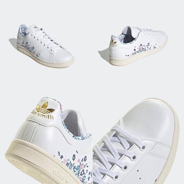 アディダスを代表するフランチャイズモデルに、さりげないリバティプリント柄がどんなスタイルにもマッチする。