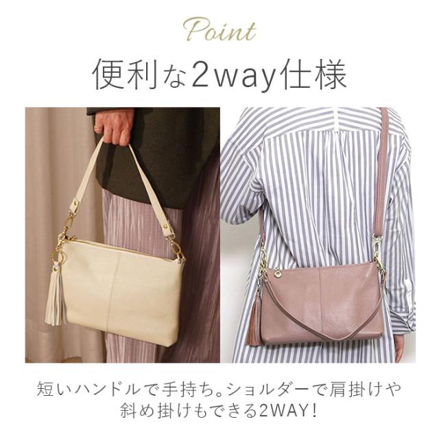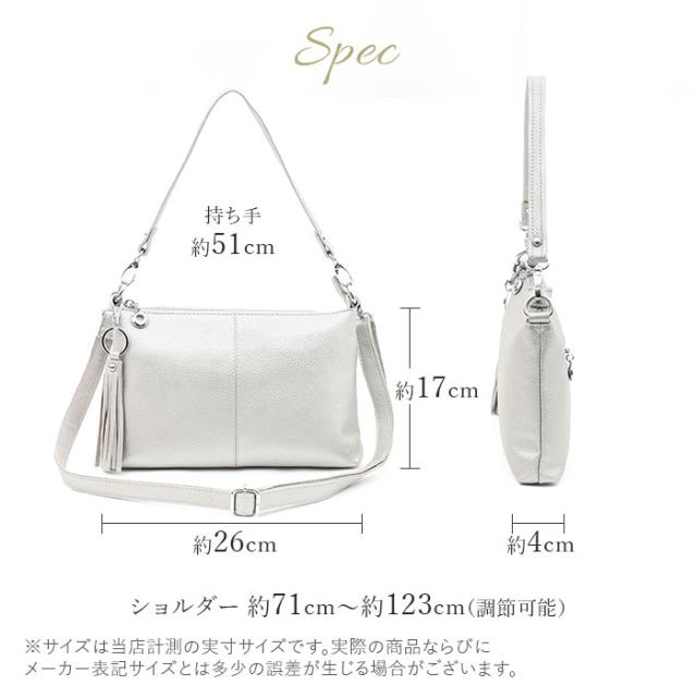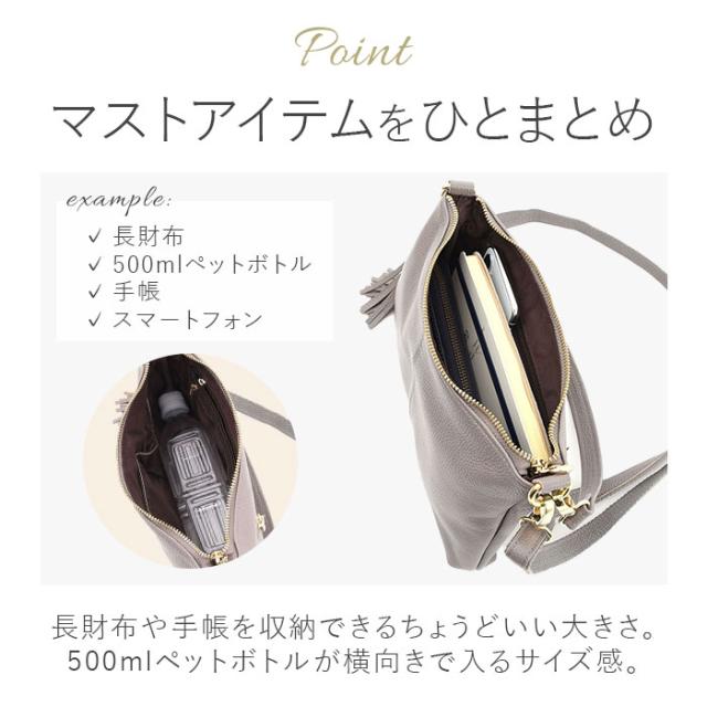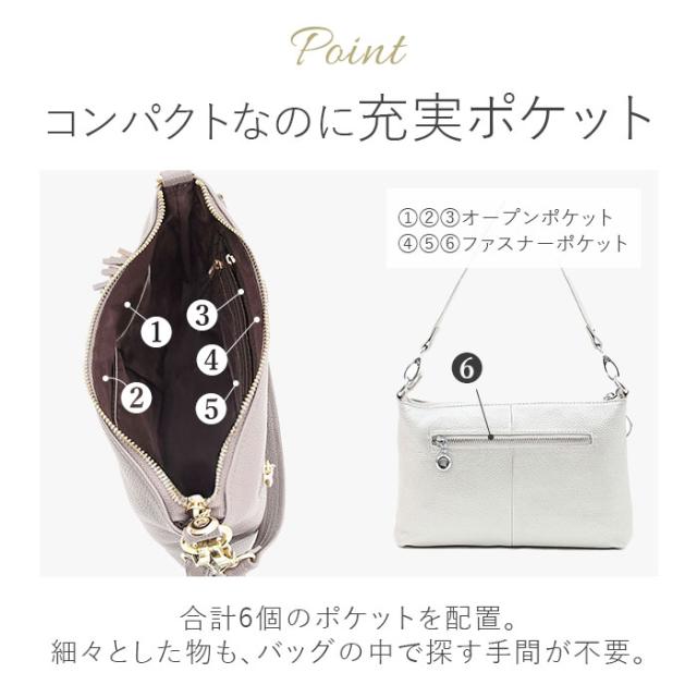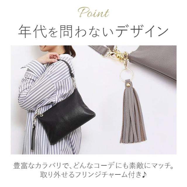 | 商品説明 | 【ミニマルスタイルにおすすめ】 ・おしゃれに持てる相棒♪「COOCO シュリンクレザー2WAYショルダーバッグ」。 【落ち着きのある上品な仕上がり】 ・柔らかな牛革の表面を収縮させ、シボ感を出すシュリンク加工を。光沢のある金具と相性抜群。 【お好みに合わせてスタイルチェンジ】 ・短いハンドルで手持ち。長いショルダーで肩掛けや斜め掛けもできる2WAY!付け替えも簡単◎ 【開閉スムーズ、安心の天ファスナー】 ・ガバっと開いて取り出しやすく、ファスナーを閉じれば中身の飛び出しをガード。 【マストアイテムをひとまとめ】 ・長財布やペットボトル、小さめの手帳を収納できるサイズ感。旅行などではサブ使いも♪ 【サクッと取り出せて迷子知らず】 ・合計6個のポケットを配置。細々とした物も、バッグの中で探す手間が不要。 【使う人を選ばないシンプルデザイン】 ・年代問わず持ちやすく、どんなコーデにも素敵にマッチ。取り外せるフリンジチャーム付き♪ 【ポケット仕様】 ・内側:ファスナーポケット×2、オープンポケット×3 ・背面:ファスナーポケット×1 |