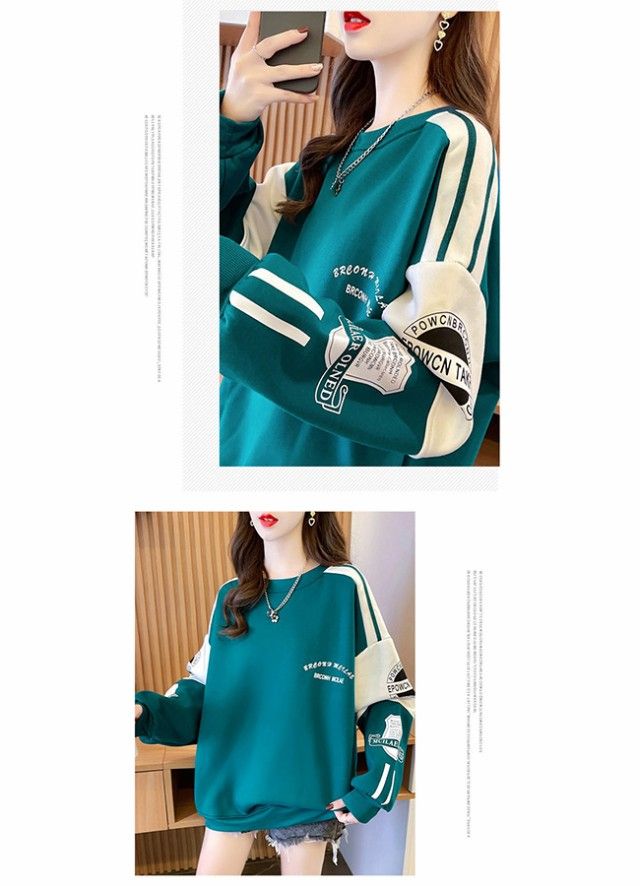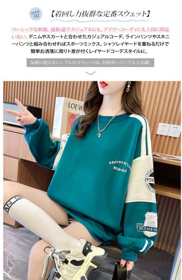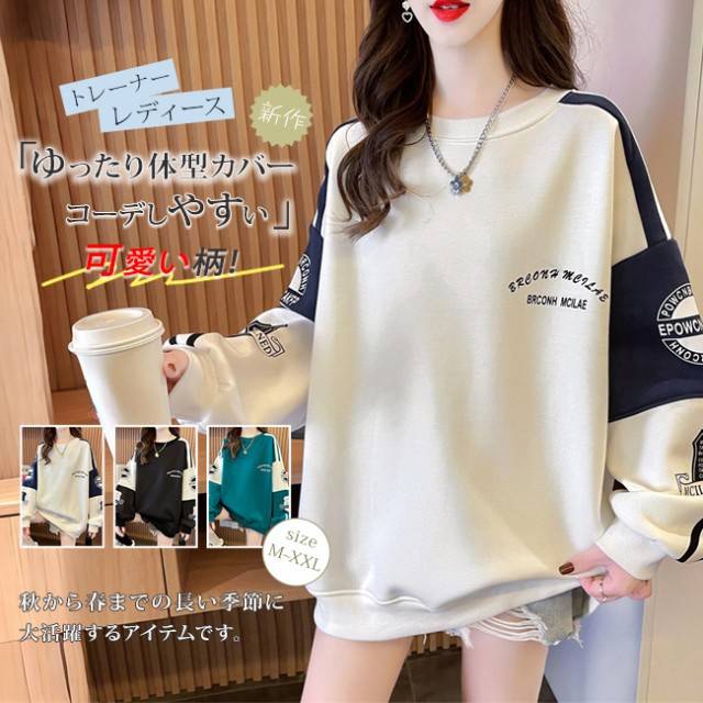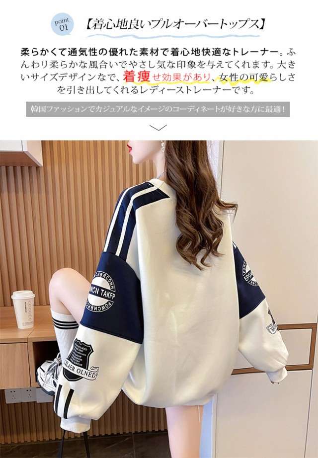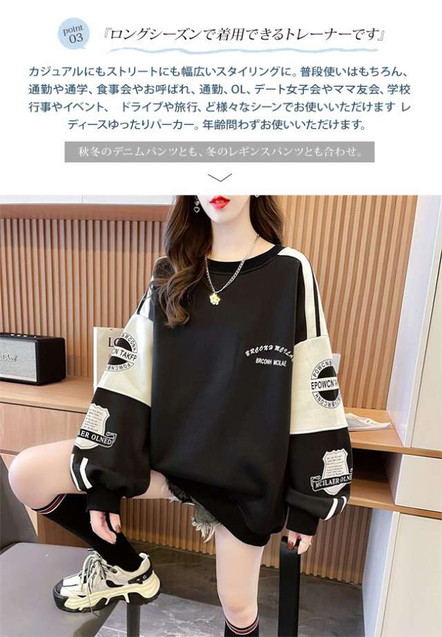トレーナー レディース パーカー スウェット 長袖 丸首 プルオーバー トップス ゆったり 大きいサイズ シンプル カジュアル 無地 韓国 体型カバー 着痩せ 春 秋 冬