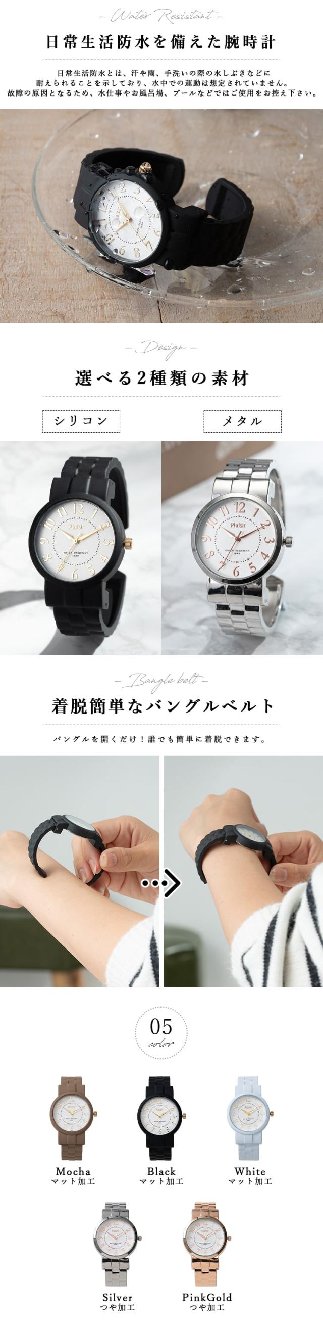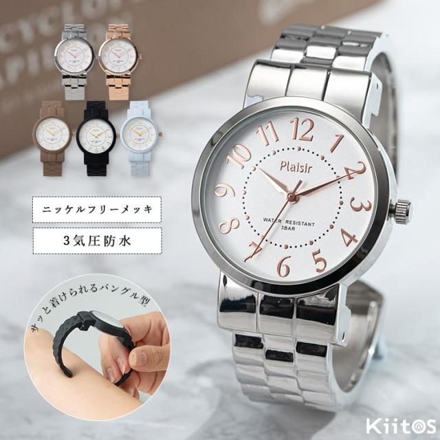 腕時計 レディース ニッケルフリー 3気圧防水 バングル ウォッチ 金属アレルギー メタル シリコン かわいい おしゃれ 大人 仕事 学生 受験 20代 30代 40代 女性 プレゼント ギフト 名入れ 見やすい 日本製ムーブメント 1年間のメーカー保証付