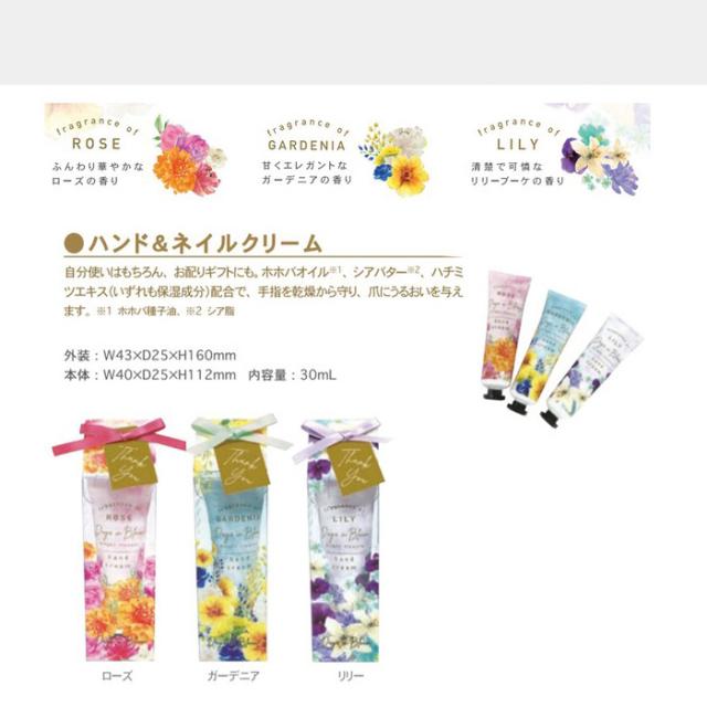 | 【特 徴】 | 毎日に咲き香る、花々の贈りもの。 芳醇な花のアロマが魅力のギフト 気軽に楽しめる花のアイテムが、毎日に彩りと豊かさを添えるようやさしく咲き香ります。 自分使いはもちろん、お配りギフトにも。 ホホバオイル、シアバターハチミツエキス配合で、手指を乾燥から守り、爪にうるおいを与えます。 【ローズ】ふんわり華やかなローズの香り 【ガーデニア】甘くエレガントなガーデニアの香り 【リリー】清楚で可憐なリリーブーケの香り |