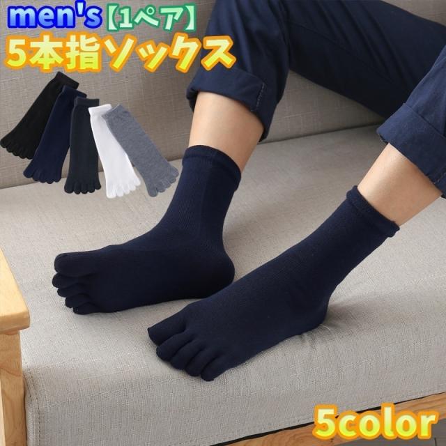 5本指ソックス 1ペア クルーソックス メンズ 男性 紳士 靴下 通気性 ムレ防止 くつ下 シンプル 無地 通勤 仕事 デイリー