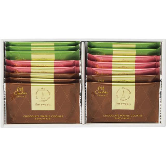 サクッと軽い食感のワッフルクッキーに、3種類のチョコをコーティング。