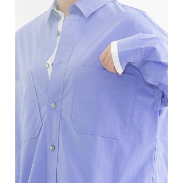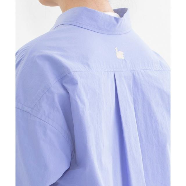 ワーク、ミリタリートレンドを受けたポケットシャツ。羽織シャツコーデを楽しめる、大きめシルエットのチュニック丈です。フロントの前端と、左カフスの配色ラインがアクセント。裾の文字プリントやバックに入ったスワン刺繍もさりげないポイントに。後ろが長めの前後差デザイン。