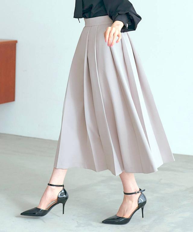 360度きれいなフレアが出るようにタックを施したデザイン。ボリューム感を抑えた上品なシルエット。