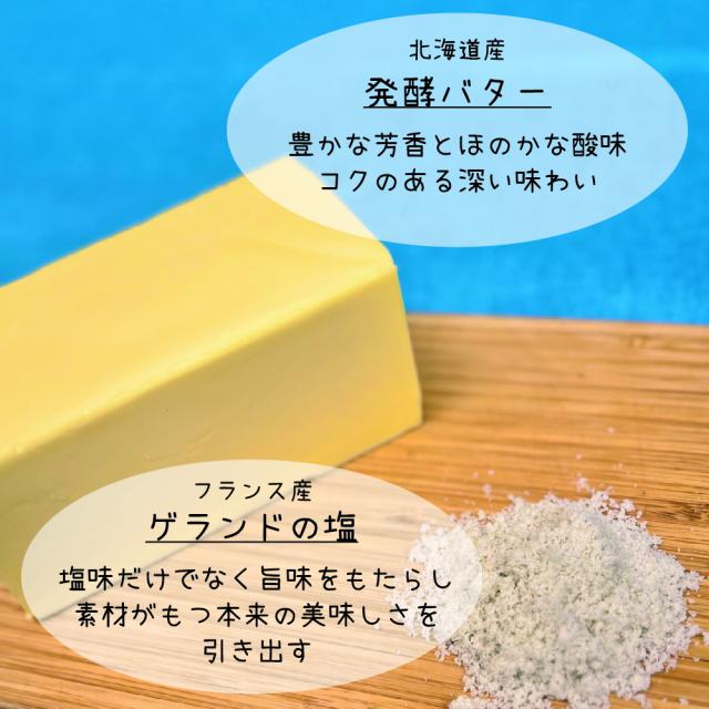 北海道産の発酵バターとフランス産のゲランドの塩を使用した、香り豊かで甘じょっぱい、一度食べたらクセになるバターケーキです。
